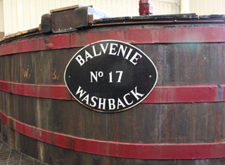 | 발효가 완료되면 알코올 도수 7~8% 내외의 술덧(Wash)이 된다. 위스키 제조업체들은 스테인리스 발효통을 사용하는데 비해 발베니 증류소는 천연 전나무로 만든 발효통을 사용한다. |