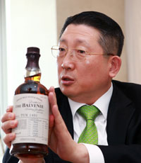 싱글몰트 위스키 중에서 판매량 1위는 윌리엄 그랜트앤선즈의 글렌피딕이다. 2위는 글렌리벳, 3위는 맥캘란이다. 그 외 글렌모렌지, 글렌그란트, 카듀, 발베니, 라프로익, 아버로우, 보우모워 등이 인기를 얻고 있다. 윌리엄 그랜트앤선즈의 발베니는, 판매량에서는 글렌피딕, 글렌리벳, 맥캘란보다 적지만 브랜드 가치에서는 최상급 싱글몰트 위스키로 대우를 받고 있다. 위스키 원액을 전액 수입하는 우리나라는 세계적인 위스키 소비국이다. 스카치 위스키 수입량으로는 세계 12위(2012년)를 기록했다. 판매가(販賣價)로는 세계 4위에 달한다. 2011년의 경우 17년산 이상 고급 위스키(수퍼 프리미엄급)를 전 세계에서 가장 많이 마신 것으로 조사됐다. 영국의 국제주류시장연구소(International Wine and Spirit Research·IWSR)에 따르면, 2011년 전 세계 고급 위스키 판매 현황을 조사한 결과 대(對)한국 출고량이 69만8000상자(한 상자는 9L 기준)로 1위를 차지했다. 2위는 미국(47만8000상자)이고 3위는 중국(23만4000상자)이다. 우리나라는 수퍼 프리미엄급 위스키의 출고량 부문에서 2001년부터 10년 넘게 1위 자리를 지키고 있다. 물론 경기불황으로 국내 위스키 소비량은 해마다 줄고 있다. 위스키 업계에 따르면 국내 위스키 시장 1위인 ‘윈저’는 2013년도 판매량이 전년 대비 11.9% 감소했다. 2위인 ‘임페리얼’은 22.8%, 3위인 ‘스카치블루’는 18% 줄었다고 한다. 세계적인 블렌디드 위스키인 ‘발렌타인’도 국내 소비량이 24% 감소했다. 이런 상황에서도 성장하고 있는 싱글몰트 위스키의 판매량은 꾸준히 늘고 있다. 세계 판매 1위 싱글몰트 위스키 ‘글렌피딕’은 2013년도 1분기와 전년 동기를 비교한 결과 16%가량 판매량이 늘었다. 단란·유흥주점에서 폭탄주를 마시는 대신 소규모 레스토랑이나 토킹바(Talking Bar)에서 위스키의 풍미를 즐기는 문화가 확산되고 있기 때문이라고 한다. 윌리엄 그랜트앤선즈 코리아 김일주(金一柱·54) 대표의 말이다. “우리나라 음주문화는 분위기가 크게 작용합니다. 술을 즐기는 것보다 풍류를 즐기는 데 필요한 도구로서 술을 마셔 왔지요. 그러다가 ‘우리’가 아닌 ‘나’의 문화가 늘어나고 아울러 경기가 안 좋아지면서 폭탄주 문화는 줄고, 대신 소량(少量)의 위스키를 마시며 술 자체를 즐기는 문화가 늘고 있습니다. 술 문화가 바뀌면서 블렌디드 위스키보다 싱글몰트 위스키를 찾는 이들도 증가하고 있어요. 싱글몰트 위스키 시장이 매년 10% 이상의 꾸준한 성장세를 보이고 있는 데 주류 업계의 한 사람으로서 주목하고 있습니다.” 지난해 4월 윌리엄 그랜트앤선즈 코리아 대표이사로 취임한 김일주 대표는 30여 년간 위스키 전문가로 활약해 왔다. 그는 국내 소비자들의 취향과 입맛을 고려한 제품 리뉴얼, 신제품 출시를 성공적으로 이끈 위스키 분야의 산증인으로 평가 받고 있다. 그는 두산씨그램, 진로발렌타인스, 페르노리카코리아를 거쳤으며 진로발렌타인스 마케팅담당 임원으로 있던 2001년에는 임페리얼 위조방지 장치인 ‘키퍼캡’을 국내 최초로 도입하며 ‘윈저’에 밀리고 있던 위스키 시장 점유율을 단숨에 역전시킨 것으로 유명하다. 세계적으로 유명한 ‘발렌타인’ 위스키를 국내 시장에 성공적으로 론칭하기도 했다. 2009년에는 골든블루를 직접 개발·출시했다. |