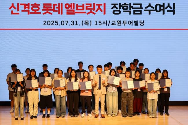 ·ÔÁ¦ÀåÇÐÀç´ÜÀº Áö³ 7¿ù 31ÀÏ ¼¿ï Á¾·Î±¸ ±³¿øÅõ¾î ÄܼƮȦ¿¡¼ ¡®½Å°ÝÈ£ ·Ôµ¥ ¿¤ºê¸´Áö(L-Bridge) ÀåÇÐ±Ý ¼ö¿©½Ä¡¯À» ¿°í, û¼Ò³â ¸àÅä 100¸í¿¡°Ô ÃÑ 2¾ï7000¸¸¿øÀÇ ÀåÇбÝÀ» Àü´ÞÇß´Ù°í ¹àÇû´Ù.
