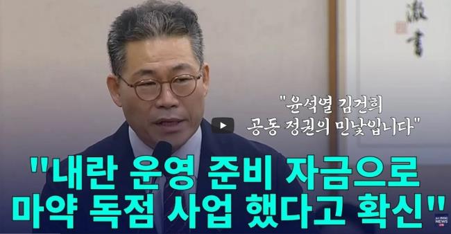 ¹éÇØ·æ °æÁ¤ÀÌ Á¦±âÇÑ À±¼®¿ Àü ´ëÅë·É ºÎºÎ(±è°ÇÈñ ¿©»ç Æ÷ÇÔ)¸¦ °Ü³ÉÇÑ ±¸Ã¼Àû ÀÇȤÀº 2023³â ÀÎõ°øÇ× ´ëÇü ÇÊ·ÎÆù ¹Ð¼ö »ç°Ç ¼ö»ç °úÁ¤¿¡¼ ¼¼°ü °ø¹«¿ø ¿¬·ç¸¦ ÀºÆóÇϱâ À§ÇØ ´ëÅë·É½Ç¡¤°æÂû °íÀ§ °£ºÎ µîÀÌ ¿Ü¾ÐÀ» Çà»çÇß´Ù´Â ÁÖÀåÀÌ´Ù. ±×´Â ÀÌ »ç°ÇÀÌ ´Ü¼ø ¸¶¾à ¹Ð¼ö°¡ ¾Æ´Ñ "³»¶õ ÀÚ±Ý ¸¶·ÃÀ» À§ÇÑ ¸¶¾à ¼öÀÔ µ¶Á¡ »ç¾÷"À¸·Î, À± Àü ´ëÅë·É ºÎºÎ°¡ °³ÀÔÇß´Ù°í Æø·ÎÇÏ¸ç ±è°ÇÈñ ¿©»çÀÇ "Àϰ¡ »ç¾÷ ¿¬°ü¼º"À̳ª ±¸¸í ·Îºñ ÀÇȤ±îÁö ¿¬°á Áö¾ú´Ù.