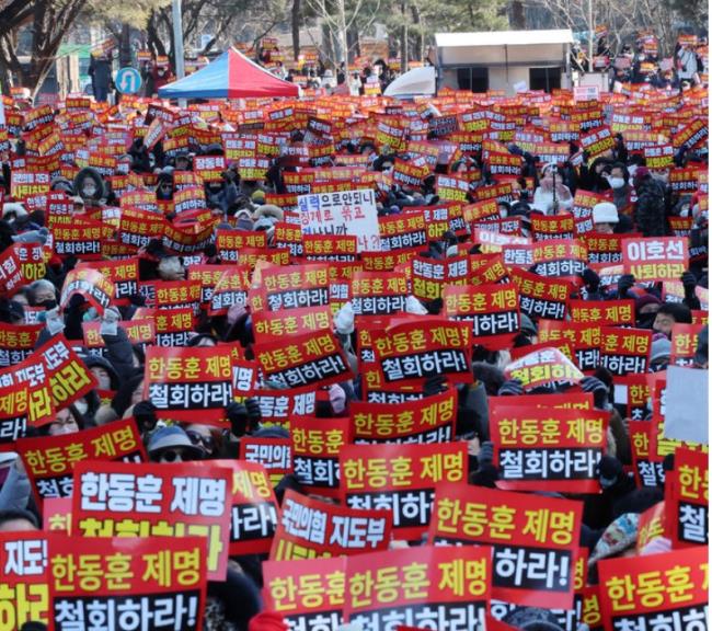À̵éÀº 'Çѵ¿ÈÆ Á¦¸í öȸÇ϶ó' '±¹¹ÎÀÇÈû ÇØ»êÇ϶ó' '±Ø¿ìÁ¤´ç ¹Ý´ëÇÑ´Ù'°í ÀûÈù ÇÇÄÏÀ» µé°í "Çѵ¿ÈÆ ¿ì¸®°¡ ÁöŲ´Ù" "Çѵ¿ÈÆÀ» ³»Ä£´Ù¸é (±¹¹ÎÀÇÈû) ÁöµµºÎ´Â °¢¿ÀÇØ¶ó"°í ±¸È£¸¦ ¿ÜÃÆ´Ù.