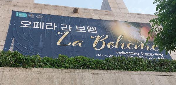 예술의 전당에 다가가자 외곽 벽면에 있는 <라 보엠, La Bohème>의 대형 안내판이 나뭇가지들 사이에서 모습을 드러냈다. ‘5월 20일부터 22일까지 공연한다’고 예고돼 있었다.