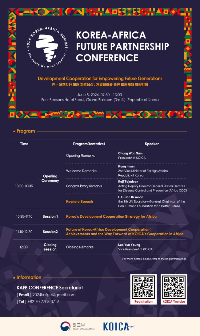 이번 컨퍼런스는 4~5일 열리는 ‘2024 한-아프리카 정상회의(2024 Korea-Africa Summit)’의 부대행사로 코이카가 주최하고 외교부가 후원한다.