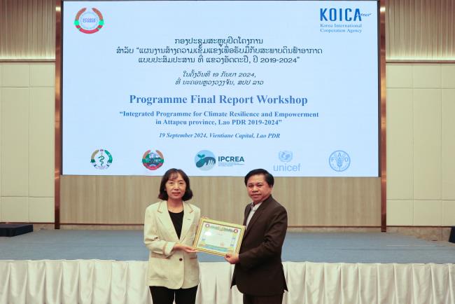 코이카(KOICA‧한국국제협력단)는 19일(현지시간) 라오스 수도 비엔티안에 위치한 라오플라자호텔에서 ‘라오스 앗따쁘주 기후변화 대응 회복력 및 자립역량 강화를 위한 통합 프로그램’의 종료보고회를 개최하고, 라오스 중앙정부 및 주정부 관계자 등 참석자 60여 명에게 사업 성과를 공유했다.