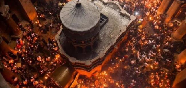 - 예루살렘 성묘성당에서 열린 성화(聖火, Holy Fire) 의식에서 신자들이 촛불을 들고 예수의 부활을 기리는 모습. 수천 명이 운집해 불빛을 나누는 장면이 특징이다. 이 사진은 과거에 촬영된 자료사진으로, 올해는 전쟁 여파로 대규모 참여가 제한된 채 의식이 진행됐다. 사진=UA.news 캡처