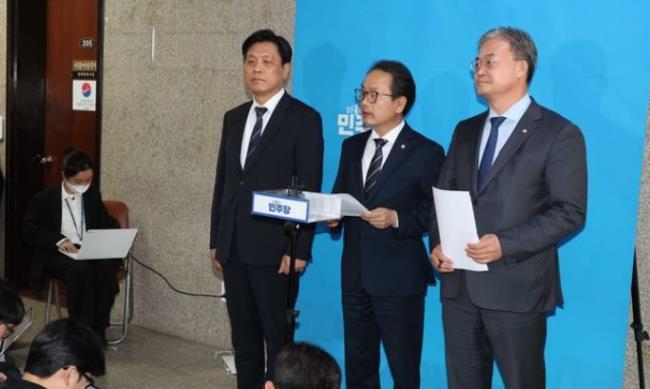 - 강준현 더불어민주당 수석대변인이 23일 오후 서울 여의도 국회 당대표실 앞에서 인천지역 전략공천 후보룰 발표하고 있다. 사진=뉴시스