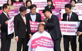 박형준 부산시장이 여의도 국회에서 삭발식 한 이유는