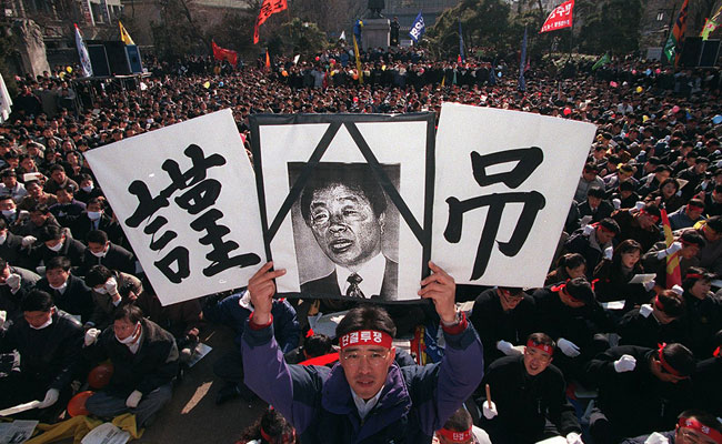 °³ÇõÀÇ »ó¡°ú °°¾Ò´ø ±è¿µ»ï ¹®¹ÎÁ¤ºÎÀÇ ¹Ý¹ÎÁÖÀû ÇàÅ¿¡ ´ëÇÑ ºñÆÇÀº °Å¼Ã´Ù. ´ç½Ã YSÀÇ ÈİèÀÚ·Î °Å·ÐµÆ´ø ÀÌÈ«±¸ ´ëÇ¥´Â ³ëµ¿¹ý ÆÄµ¿¿¡ ±íÀÌ °³ÀÔÇÏ¸é¼ Ãß¶ôÇß´Ù. À̸¦ °è±â·Î YS¿Í ´ë¸³ÇÏ´ø ÀÌȸâ Àü ÃѸ®°¡ ¿©´ç ´ë±Ç È帷Π±ÞºÎ»óÇß´Ù. ¼³»ó°¡»óÀ¸·Î 1997³â 2¿ù ÇѺ¸ »çÅÂ¿Í YS Â÷³² ±èÇöö °³ÀÔ ÀÇȤ »ç°ÇÀÌ ¹ß»ýÇÏÀÚ ¹®¹ÎÁ¤ºÎ´Â ¸ô¶ôÀÇ ±æÀ» °É¾ú´Ù.