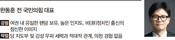 2025³â ½Ç½ÃµÈ °¢Á¾ ¿©·ÐÁ¶»ç¸¦ º¸¸é Â÷±â ´ë±Ç ÁÖÀÚ ÁöÁöÀ²À» ¹¯´Â Áú¹®¿¡¼­ ¾î´À Á¤µµ ÁöÁöÀ²À» È®º¸Çϰí ÀÖ´Â ¾ß±Ç Àλç·Î´Â À嵿Çõ ±¹¹ÎÀÇÈû ´ëÇ¥, Çѵ¿ÈÆ Àü ±¹¹ÎÀÇÈû ´ëÇ¥, ¿À¼¼ÈÆ ¼­¿ï½ÃÀå, ÀÌÁؼ® °³Çõ½Å´ç ´ëÇ¥ µîÀÌ ÀÖ´Ù. ÀÌµé ¸ðµÎ ´ë±Ç¿¡ ¶æÀÌ ÀÖ´Â °ÍÀ¸·Î ¾Ë·ÁÁ® ÀÖ´Ù. ´ç³»¿¡¼­´Â À̵é»Ó¸¸ ¾Æ´Ï¶ó ÁßÁø±Þ ÀÇ¿ø ¹× ÀüÁ÷ ÀÇ¿ø, ±¤¿ª´ÜüÀå µîÀ» Æ÷ÇÔÇØ ´õ ¸¹Àº ´ë±Ç ÁÖÀÚ¸¦ ¹ß±¼ÇØ ¼­·Î °æÀï½ÃŰ¸é¼­ ½Ã¼±À» ÁýÁß½Ã۰í Èĺ¸·Î¼­ °æÀï·ÂÀ» È®º¸ÇÏ°Ô ÇØ¾ß ÇÑ´Ù´Â ÁÖÀåÀÌ ³ª¿Â´Ù.