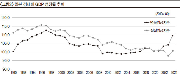 ÇÑÆí, ¡´±×¸²3¡µÀº ÀϺ»ÀÇ ¸í¸ñ¡¤½ÇÁúÀÓ±Ý Áö¼öÀÇ ÃßÀ̸¦ ³ªÅ¸³½´Ù. ¸í¸ñÀÓ±ÝÀº 1996³â¿¡, ½ÇÁúÀÓ±ÝÀº 1997³â¿¡ °¢°¢ Á¤Á¡À» ±â·ÏÇÑ ÀÌÈÄ Áö¼ÓÀûÀÎ Ç϶ô¼¼¸¦ º¸À̰í ÀÖ´Ù. ÀÌ·¯ÇÑ ÀÓ±Ý Ç϶ôÀº ÀϺ» °æÁ¦ÀÇ Àå±â ħü°¡ ³ëµ¿ ½ÃÀå Àü¹Ý¿¡ ±¸Á¶ÀûÀÎ ¿µÇâÀ» ¹ÌÄ¡°í ÀÖÀ½À» ½Ã»çÇÑ´Ù.