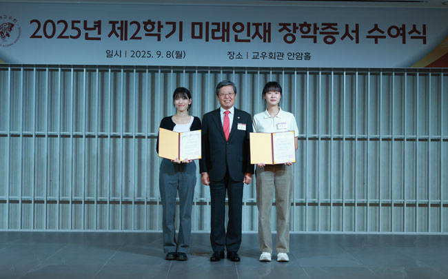 Áö³­ 9¿ù 8ÀÏ °í·Á´ë ±³¿ìȸ°ü¿¡¼­ 2Çбâ ÀåÇÐ±Ý Àü´Þ½ÄÀÌ ¿­·È´Ù. °¡¿îµ¥°¡ ½Â¸íÈ£ °í·Á´ë ±³¿ìȸÀå. »çÁø=°í·Á´ë ±³¿ìȸ