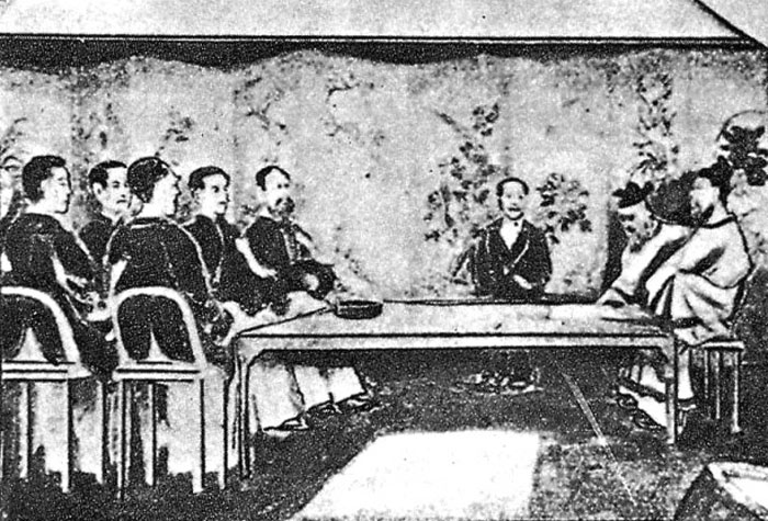 ÀÌ·¯ÇÑ µô·¹¸¶ ¼Ó¿¡¼ ¿ÀÄíº¸ Á¤±ÇÀÌ °í¾ÈÇÑ ÇØ¹ýÀº ¾î¶² Àǹ̿¡¼± ±â»óõ¿ÜÇÑ °ÍÀ̾ú´Ù. ±×°ÍÀº ¸¶Ä¡ ¹Ì±¹ÀÇ Æä¸®(Matthew C. Perry) Á¦µ¶ÀÌ 1853³â Èæ¼±(ýÙàÏ)À» À̲ø°í ¿ì¶ó°¡¿¡ ³ªÅ¸³ª ÀϺ»ÀÇ ¡®°³±¹(ËÒÏÐ)¡¯À» À̲ö °Íó·³, À̹ø¿¡´Â ÀϺ»ÀÎ ÀڽŵéÀÌ Æä¸®ÀÇ ¿ªÇÒÀ» ¸Ã¾Æ ¡®¹Ì°³ÇÑ¡¯ Á¶¼±ÀÎÀ» ¡®°³È(ËÒûù)¡¯½ÃŰ´Â Àå¸éÀ» ¿¬ÃâÇÏ´Â °ÍÀ̾ú´Ù. ÀÌ ÀÏÁ¾ÀÇ ¡®¿Ü±³±Ø(èâÎßм)¡¯Àº ±¹³»ÀûÀ¸·Î´Â ¸ÞÀÌÁö Á¤ºÎ°¡ äÅÃÇÑ ¼±¸È Á¤Ã¥(Westernization)ÀÇ ºû³ª´Â ¼ºÃë·Î ¼±ÀüµÇ¾î ¹ÝÁ¤ºÎ ¿©·ÐÀ» È£Àü½ÃŰ´Â ÇÑÆí, ±¹Á¦ÀûÀ¸·Î´Â ¾Æ½Ã¾ÆÀÇ ¹®¸í±¹À¸·Î¼ ±¹Á¦Àû À§½Å Á¦°í¿¡ º¸ÅÆÀÌ µÉ °ÍÀ¸·Î ±â´ëµÇ¾ú´Ù.
