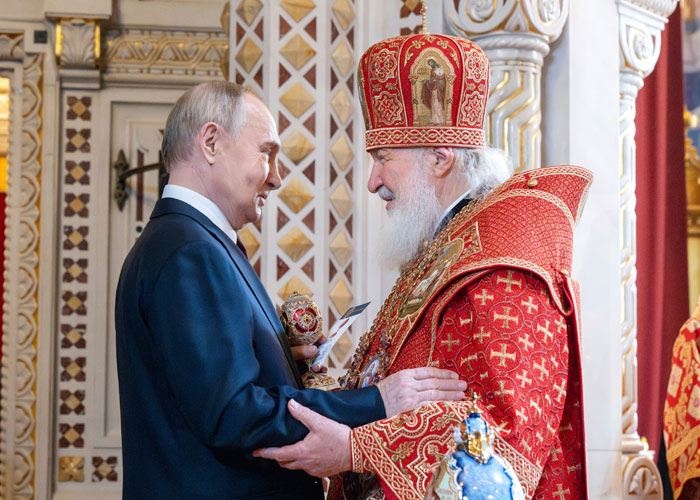 Ǫƾ ·¯½Ã¾Æ ´ëÅë·É(¿ÞÂÊ)Àº 2025³â 4¿ù 20ÀÏ ¸ð½ºÅ©¹ÙÀÇ ±×¸®½ºµµ ±¸¼¼ÁÖ ´ë¼º´çÀ» ¹æ¹®, ·¯½Ã¾Æ Á¤±³È¸ ÃÑ´ëÁÖ±³ ۸±°ú ÇÔ²² ºÎȰÀýÀ» ÃàÇÏÇß´Ù. »çÁø=AP/´º½Ã½º¿ìÅ©¶óÀ̳ªÀÇ À¯·Î¸¶ÀÌ´Ü Çõ¸í Á÷ÈÄ, ¼¼¸£°ÔÀÌ ¶óºê·ÎÇÁ ·¯½Ã¾Æ ¿Ü¹«Àå°üµµ ÀÌ·± Àǻ縦 °ø°³ÀûÀ¸·Î Ç¥ÃâÇß´Ù. ¡°¼¹æÀÌ ÀÚ½ÅÀÇ ±âµ¶±³Àû »Ñ¸®¸¦ Àú¹ö¸®´Â »çÀÌ¿¡ ·¯½Ã¾Æ´Â ¹®¸íÀû »Ñ¸®ÀÎ Á¤±³È¸·Î µ¹¾Æ°¡°í ÀÖ´Ù¡±´Â °ÍÀÌ ±×ÀÇ ÁÖÀåÀ̾ú´Ù. ·¯½Ã¾Æ–¿ìÅ©¶óÀ̳ª ÀüÀïÀ» ÅëÇØ ¼¼°èÀûÀ¸·Î À¯¸íÇØÁø ¾Ë·º»êµå¸£ µÎ±ä°ú °°Àº ºñÁÖ·ù Áö½ÄÀεéÀÇ ¿µÇâ·Âµµ ±×¿¡ ºñ·ÊÇØ¼ Ä¿Á®°¬´Ù.