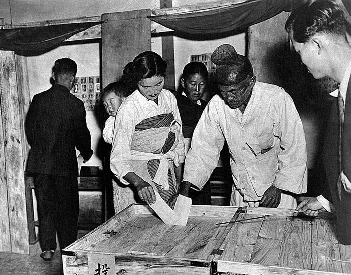 À¯¿£Çѱ¹ÀÓ½ÃÀ§¿ø´ÜÀÇ °¨½Ã ¾Æ·¡ 1948³â 5¡¤10 ÃѼ±ÀÌ ½Ç½ÃµÆ°í, ÀÌ¾î ±¹È¸°¡ ±¸¼ºµÇ°í Çå¹ýÀÌ Á¦Á¤µÇ¸é¼ ´ëÇѹα¹ÀÌ ¼ö¸³µÆ´Ù. »çÁø=±¹°¡±â·Ï¿ø¡ª ±×·¸Áö¿ä.