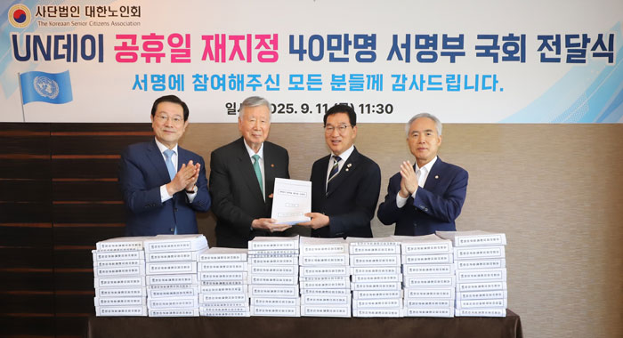 ÀÌÁ߱٠ȸÀåÀº 2025³â 9¿ù 11ÀÏ À¯¿£µ¥ÀÌ °øÈÞÀÏ ÀçÁöÁ¤À» Á¦¾ÈÇÏ´Â ¼¸íºÎ¸¦ ±¹È¸¿¡ Àü´ÞÇß´Ù. (¿ÞÂʺÎÅÍ) À̿뼷 ´ëÇѳëÀÎȸ Çõ½ÅÀ§¿øÀå, ÀÌÁß±Ù ´ëÇѳëÀÎȸ ȸÀå, ½ÅÁ¤ÈÆ ÇàÁ¤¾ÈÀüÀ§¿øÀå, ¾çºÎ³² ´õºÒ¾î¹ÎÁÖ´ç ÀÇ¿ø. »çÁø=ºÎ¿µ±×·ì¡ª À¯¿£µ¥ÀÌ´Â ¿Ö °øÈÞÀÏ¿¡¼ Á¦¿ÜµÈ °Ç°¡¿ä.