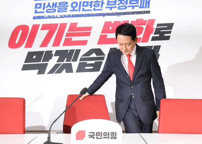 ±¹¹ÎÀÇÈû À嵿Çõ ´ëÇ¥°¡ 2¿ù 12ÀÏ ¼¿ï ¿©Àǵµ ±¹È¸¿¡¼ ÀÌÀç¸í ´ëÅë·É°úÀÇ ¿ÀÂù¿¡ ºÒÂüÇÏ´Â °Í°ú °ü·ÃÇØ ÀÔÀåÀ» ¹àÈ÷±â À§ÇØ Âø¼®Çϰí ÀÖ´Ù. »çÁø=Á¶¼±DB2¿ù 12ÀÏ ¿ÀÈÄ 4½Ã 40ºÐ, ¼¿ï ¿©Àǵµ ±¹È¸ º»Ã» ±¹¹ÎÀÇÈû ´ëÇ¥½Ç. ÁÖ¾îÁø ½Ã°£Àº 1½Ã°£ ³²ÁþÀ̾ú´Ù. ±×´Â ÀÌ¹Ì ±×³¯ ¾ÆÄ§ 8½ÃºÎÅÍ ÁöµµºÎ¿Í ȸÀǸ¦ Çß°í, ¿¹Á¤µÆ´ø ÀÌÀç¸í ´ëÅë·É ¹× Á¤Ã»·¡ ´õºÒ¾î¹ÎÁÖ´ç ´ëÇ¥¿ÍÀÇ 3ÀÚ ¿ÀÂù¿¡ ºÒÂüÀ» ¼±¾ðÇß´Ù. ±âÀÚµé ¾Õ¿¡ ¼¹°í, ¶Ç ÀÌ ÀÚ¸®¿¡ ¾É¾Æ ÀÖ¾ú´Ù. ÇÏ·ç°¡ ±æ¾ú´Ù. ±×ÀÇ ¸»Àº »¡¶ú°í, Á¤È®Çß°í, ±æ¾ú´Ù. ¹ýº¹À» ¹þ¾úÁö¸¸ ÆÇ»çÀÇ ¸»Åõ´Â ³²¾Æ ÀÖ¾ú´Ù.