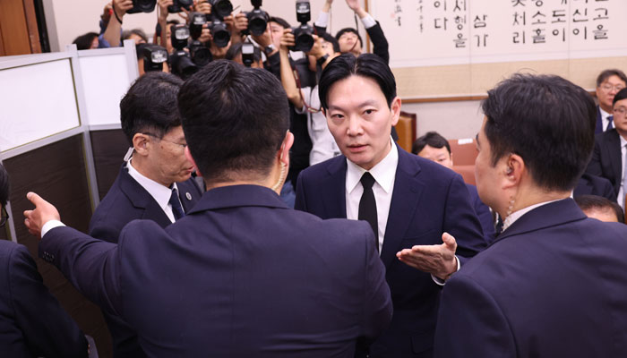 박상용 검사가 4월 14일 국회 ‘윤석열정권 정치검찰 조작기소 의혹사건 진상규명 국정조사 특별위원회(국조특위)’ 청문회에서 강제 퇴장 당하고 있다. 사진=뉴시스― 법무부라는 국가기관 명의로 말이죠.