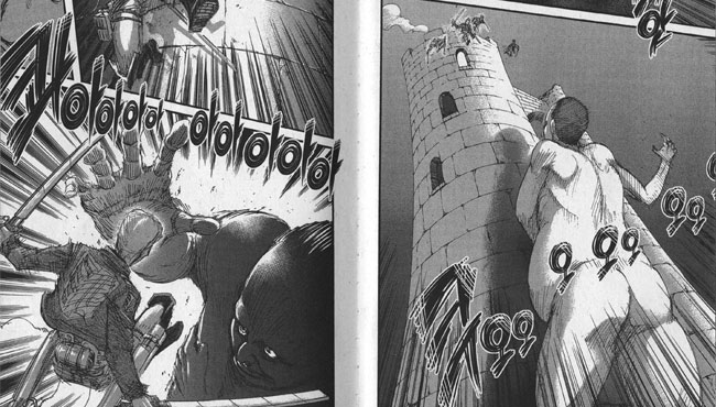 ¡´Áø°ÝÀÇ °ÅÀΡµÀº ÀÌ Ã¶Åë°úµµ °°ÀÌ ¿©°ÜÁö´ø ¹æº®ÀÌ Å©±â 50m°¡ ³Ñ´Â ÃÊ´ëÇü °ÅÀÎÀÇ ÃâÇöÀ¸·Î 100³â ¸¸¿¡ ±× °¡Àå ¹Ù±ùÂʺÎÅÍ ¹«³ÊÁö¸é¼ ½ÃÀ۵ȴÙ. ¼ºº® ¾È¿¡ »ç´Â ÀÏ·ÃÀÇ ÀþÀºÀ̵é°ú º´»çµéÀÌ ¸ñ¼ûÀ» °É°í °ÅÀεé°ú ½Î¿ö ³ª°¡¸ç ¾î¶»°Ôµç µÎ ¹øÂ° ¼ºº®ÀÌ ÇÔ¶ôµÇÁö ¾Êµµ·Ï ÅõÀïÇÏ´Â °úÁ¤ÀÌ ¸¸ÈÀÇ µµÀԺδÙ. ¹°·Ð ±× µÚ·Î ¿©·¯ Â÷·Ê ±âº» ¼³Á¤À» µÚÁý´Â ¹ÝÀü(Úãï®)ÀÌ ³ª¿À±ä ÇÏÁö¸¸, ¡´Áø°ÝÀÇ °ÅÀΡµ ½Åµå·ÒÀº µµÀԺαîÁö¸¸ Àü°³°¡ ÁøÇàµÈ »óȲ¿¡¼ ÀÌ¹Ì ºÒ°ÅÁ® ³ª¿Ô´Ù. ¿©±â±îÁö·Îµµ ÀÏ´Ü ÀϺ»°ú Çѱ¹ÀÇ ´ëÁß¿¡°Õ ¸ÅȤÀûÀÎ ÄÜÅÙÆ®·Î ¹Þ¾Æµé¿©Á³´Ù´Â ¾ê±â´Ù.