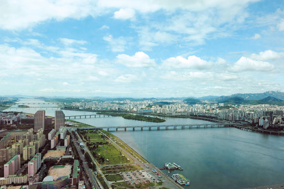 °¿øµµ¿¡¼ ¹ß¿øÇÑ ³²ÇѰ°ú ºÏÇѰÀÌ ¾ç¼ö¸®¸¦ °ÅÃÄ Çѱ¹ÀÇ ½ÉÀåºÎÀÎ ¼¿ïÀ» ³²ºÏÀ¸·Î °¡·ÎÁö¸¥´Ù. ºÏÇÑ»ê°ú °ü¾Ç»êÀ» ¸Ó¸® À§¾Æ·¡ ³õ°í ¸¶Ä¡ éÌ(¿ë) ÇÑ ¸¶¸®°¡ ²ÞƲ´ë´Â µíÇÑ ¸ð½ÀÀÇ ÇѰÀº 1200¸¸¸íÀÇ ¿µ¿øÇÑ ¾È½ÄóÀÌ´Ù. ¹«¾ùº¸´Ù ÇѰ¿¡´Â ¾Æ¸§´Ù¿î ¡®µÐÄ¡¡¯°¡ ÀÖ¾î »ýÅ °ø¿ø, Ã౸Àå, »êÃ¥·Î, ÀÚÀü°Å µµ·Î µî ´Ù¾çÇÑ ¹®È½Ã¼³°ú ³ìÁö½Ã¼³ÀÌ Àß °®ÃçÁ³´Ù.