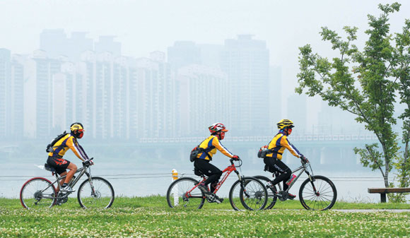 | ÇѰ µÐÄ¡¿¡¼ ÀÚÀü°Å¸¦ Ÿ¸ç ÈÞÀÏÀ» º¸³»°í ÀÖ´Â ½Ã¹Îµé. |