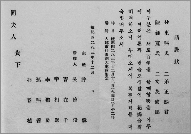 ¹ÚÁ¤Èñ–À°¿µ¼ö °áÈ¥½Ä ûøÀå.