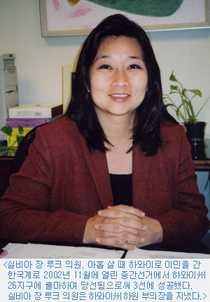 Çö¿ª 2àÔ ÀÇ¿øÀÌÀÚ ñ¶ÀÇȸ ºÎÀÇÀåÀ̾ú´ø ½Çºñ¾Æ Àå ·çÅ© ÇÏ¿øÀÇ¿øÀº 2002³â 11¿ù¿¡ ¿¸° ¹Ì±¹ Áß°£¼±°Å¿¡¼ ÇÏ¿ÍÀÌñ¶ 26Áö±¸¿¡ Ã⸶, 61.5%ÀÇ ÁöÁö¸¦ ¾ò¾î 3àÔ¿¡ ¼º°øÇß´Ù. ±×³à´Â À̹Π1.5¼¼·Î¼ ¼¿ï¿¡¼ ž 1977³â ¾ÆÈ© »ìÀÇ ³ªÀÌ·Î ¹Ì±¹ À̹Π±æ¿¡ ¿Ã¶ú´Ù. 3àÔ ÀÇ¿ø¿¡ ´ç¼±µÉ ¼ö ÀÖ¾ú´ø ¿øµ¿·Â¿¡ ´ëÇØ ¹¯ÀÚ ¡ºÇÏ¿ÍÀÌ »çȸ¿¡ ±íÀÌ »Ñ¸®¸¦ ³»¸° Áß±¹°è, ÀϺ»°è µî µ¿¾ç°è Ãâ½ÅÀÇ Áö¿ø ´öºÐ¡»À̶ó¸é¼ ÀÌ·¸°Ô ¸»Çß´Ù.