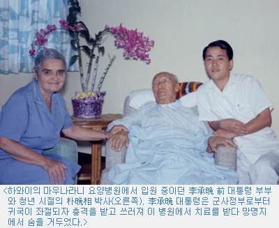 ì°ã¯Ø¹ ´ëÅë·ÉÀº ²Þ¿¡ ±×¸®´ø °í±¹À¸·Î ±ÍȯÇÏÁö ¸øÇϰí 3³â¿© µ¿¾È ÇÏ¿ÍÀÌ¿¡¼ Èûµç Åõº´»ýȰÀ» °è¼ÓÇÏ´Ù°¡ 90¼¼°¡ µÇ´ø 1965³â 7¿ù19ÀÏ ¸Á¸íÁö¿¡¼ ¼ûÀ» °ÅµÎ¾ú´Ù. ÚÓØ¹ßÓ ¹Ú»ç´Â ¡ºì°¹Ú»ç°¡ µ¶À縦 Çß´Ù´Â ºñÆÇÀ» ¹Þ°í ÀÖÁö¸¸ ±×´Â ¼±°ßÁö¸íÀÌ ÀÖ´Â Àι°À̾ú´Ù¡»¸é¼ ¡º±¤º¹ ÈÄ ÀιΰøÈ±¹À̳ª ´Ù¸§¾ø´Â »óȲ¿¡¼ ½ÃÀå°æÁ¦¿Í ÀÚÀ¯¹ÎÁÖÁÖÀǸ¦ ±Ùº»À¸·Î ÇÏ´Â ±¹°¡¸¦ ¼¼¿î °ÍÀº ì°¹Ú»ç ¾Æ´Ï¸é ºÒ°¡´ÉÇßÀ» °Í¡»À̶ó°í ¸»Çß´Ù.