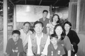 - 필자로부터 한글 음성문자를 배우는 라후族 사람들.