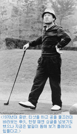 『1970년 末부터 골프를 쳤는데 늘지를 않아요. 90타 언저리에서 왔다 갔다 할 겁니다. 李順載(이순재)씨와도 같이 치는데, 내기를 하면 제가 거의 잃어요』