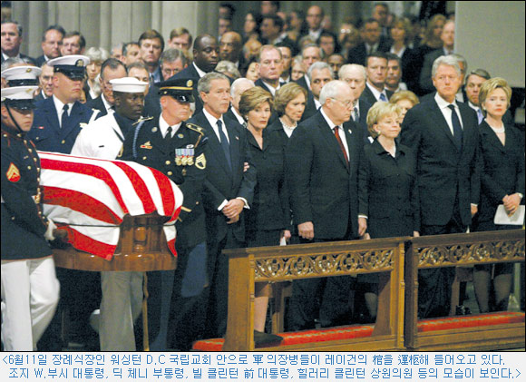 로널드 레이건 前 미국대통령이 지난 6월5일 93세를 일기로 서거했다. 레이건에 대해 미국인들은 『미국인임을 자랑스럽게 느끼게 해 주었고, 백악관을 존경스러운 마음으로 바라볼 수 있게 해 준 대통령』, 『논란이 되든 말든 잘못된 것은 잘못되었다고 말할 줄 아는 용감한 대통령』이라고 애도했다.