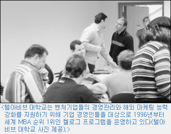 이스라엘 학계가 국가 기술개발에 기여한 또 다른 측면은 벤처기업의 경영과 마케팅 인력을 양성해 준다는 것이다. 이스라엘 벤처기업들은 新기술 개발에 정신을 쏟다 보니 정작 마케팅 인력이 없었다. 1990년대 중반경, 현지 신문 보도에 따르면, 15명 규모의 벤처기업의 경우, 사장·여비서·행정요원 한 명에 엔지니어가 12명이라는 것이다. 이 경우 누가 해외 마케팅을 하느냐고 야단이었다. 마케팅 전문가를 채용하려 해도 인력이 없다는 것이었다.