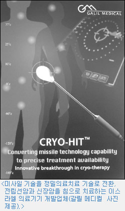2002년 4월25일 텔아비브에서 北으로 차를 몰고 1시간 30분 가량 올라갔다. 산기슭에 위치한 요크네암이라는 조그만 도시의 도로변 언덕 위에 수십 개의 의료기기 제조 벤처기업들이 자리 잡고 있었다. 이 중 하나가 「미사일 기술을 이용하여 癌을 치료한다」는 갈릴 메디컬社다.