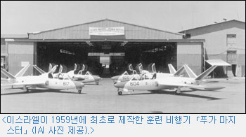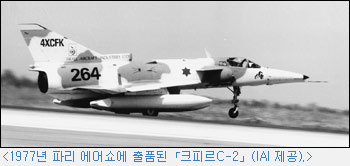 1953년에는 「이스라엘 항공산업체(IAI)」가 설립되어 항공기 개발의 발판을 구축했다. 이 업체는 설립 6년 만에 독자적으로 항공기 제조 능력을 갖추게 되었다. 이곳에서 생산한 최초의 비행기가 「푸가 마지스터」이며, 그 후 수송기도 자체적으로 만들게 되었다. 이스라엘의 항공산업은 1967년 「6일 전쟁」 이듬해, 이스라엘에 대한 프랑스의 무기 금수 조치를 계기로 크게 도약했다. 프랑스는 이스라엘이 군수물자 조달을 의존해 왔던 나라 중의 하나로, 이스라엘 공군의 요청에 따라 「미라지」 전투기를 납품해 왔다.