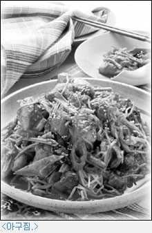 인천, 군산, 釜山 등지에서는 생아귀어로 아구찜을 하지만, 마른 아귀를 이용해야 「馬山 아구찜」이라 할 수 있겠다.