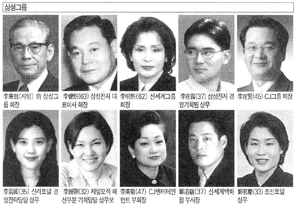 財界 3세 여성들의 활약이 가장 돋보이는 곳은 삼성家이다. 李健熙 회장의 맏딸인 李富眞(이부진·35)씨가 신라호텔 상무로 있으며, 둘째 딸 李敍顯(이서현·32) 씨도 2002년 제일모직 부장으로 입사하여 현재 패션부문 기획담당 상무보로 활동하고 있다.
