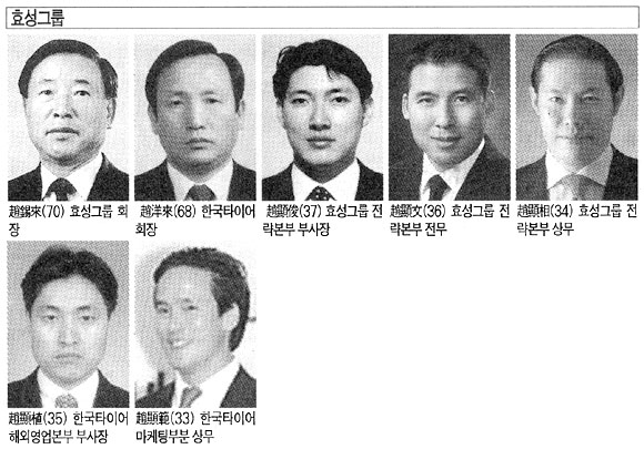 이들은 최근 대우종합기계 인수전에 공동 협력전선을 폈던 것으로 알려졌다. 하지만 효성 주변에서는 세 아들이 모두 경영자로서 적성을 지닌 것은 아니라는 지적도 있다. 형제 중에는 욕심이 상대적으로 적은 사람도 있고, 리더십이 상대적으로 약한 사람도 있게 마련이다. 社內의 눈길은 예리하게 이들의 경영수업 과정을 지켜보고 있다.