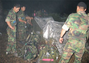 | 숙영지에서 아침식사를 준비하는 특전대원들. |