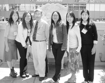 | 美 全國 韓人 대학생지도자회의(KASCON) 대회에 모인 韓人학생들이 필자(이경원: 왼쪽에서 세 번째)와 기념촬영을 하고 있다. |