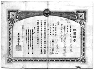 | 농지개혁법에 따라 토지를 매각한 지주들에게 땅값 상환을 약속한 상환증서. |