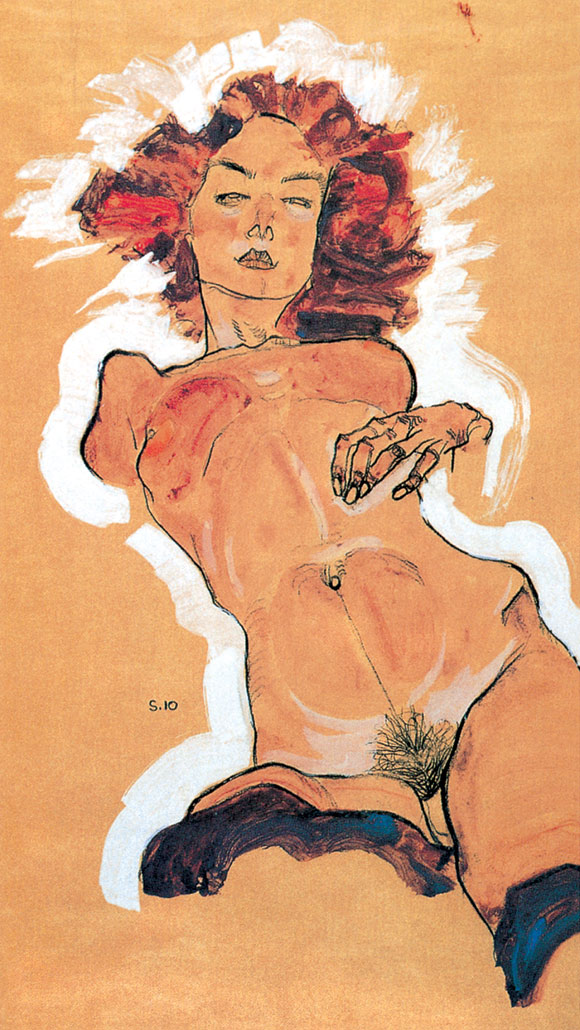 「여인의 누드」는 스타킹을 신은 여인이 섹스를 갈망하는 모습이다. 이 작품에서 에곤 실레는 관음자의 눈길로 여인을 바라보지 않고 자신의 생각과 의지에 따라 모델에게 포즈를 요구했다.
