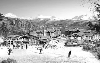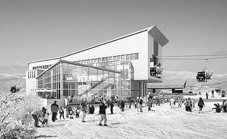 | 백운산 정상부에 건설 중인 휴게소와 스키 스쿨 조감도. 강원랜드 스키장은 철도와 연계된 국내 최초의 스키장이다. |