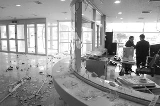 | 작년 11월 韓美FTA반대 시위대들에 의해 부서진 광주시청 유리창. |