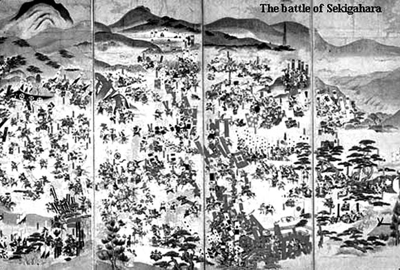 | 세키가하라 전투도. 1600년 9월 초, 세키가하라 벌판에서는 도요토미 히데요시를 대신한 이시다 미즈나리 軍과 도쿠가와 이에야스의 군대가 천하를 놓고 한판 승부를 벌였다. |
