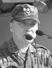 | 2005년 9월 맥아더 동상 철거 반대 집회에 나선 최대집 자유개척청년단장(왼쪽 군복입은 사람). |