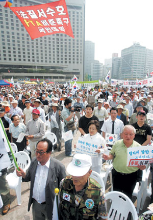 - 지난 6월 10일 서울시청 앞 광장에서 열린 보수단체들의 ‘법질서 수호와 FTA 비준 촉구대회’.