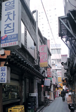 막걸리와 빈대떡, 해장국으로 대표되는 서울의 대표적인 선술집 거리인 피맛골에서는 요즘 손님과 주인이 나누는 이런 대화를 자주 들을 수 있다. 이 일대를 빌딩촌으로 만드는 정비계획안이 확정돼 이미 개발이 시작되었기 때문이다.