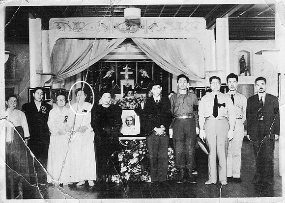 | 가운데 안준생의 영정을 중심으로 왼쪽으로 정옥녀(안준생 부인), 안성녀, 이정서(안정근의 부인), 여류비행사 권기옥. 영정 오른쪽으로 안웅호(안준생의 아들), 안춘생, 손원일. |