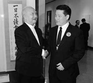 | 정진석 추기경과 만나 인사를 나누는 안준생의 손자 토니 안(오른쪽). |