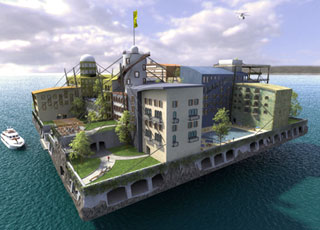 ÀÌ ¾ÆÀ̵ð¾î¸¦ ½ÇÇö¿¡ ¿Å±â±â À§ÇØ ¿þÀÎ ±×·¥¸®Ä¡¿Í ÆÐÆ®¸® ÇÁ¸®µå¸Õ(Patri Friedman)Àº 2008³â 4¿ù 15ÀÏ ½Ã½ºÅ×µù¿¬±¸¼Ò(Seasteading Institute)¸¦ ⸳Çß´Ù. ½Ã½ºÅ×µù¿¬±¸¼Ò´Â °°Àº ÇØ ÆäÀÌÆÈ Ã¢¸³ÀÚ ÇÇÅÍ µð¿¤(Peter Thiel)·ÎºÎÅÍ 10¾ï ´Þ·¯¸¦ ÅõÀÚ¹Þ¾Æ »÷ÇÁ¶õ½Ã½ºÄÚ¸¸(ؽ) °øÇØ»ó¿¡ ÇØ»óºôµùÀ» Áþ±â·Î Çß´Ù. 2014³â ¾à 150¸íÀÌ ÀÌ ÇØ»óµµ½Ã·Î ÀÌ»çÇÒ ¿¹Á¤ÀÌ´Ù.